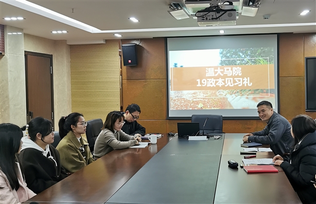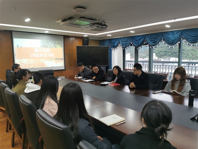 2021年11月22日上午,在八高会议室召开了“温大马院19政本学生见习礼”活动。课程建设处章丽明老师、学生活动处吴昊老师、高二学部钱康老师、高一学部林能琳老师、政治教研组叶招财老师、各位指导老师以及七位政治学科的见习生一起开展了一场温馨的见面会。