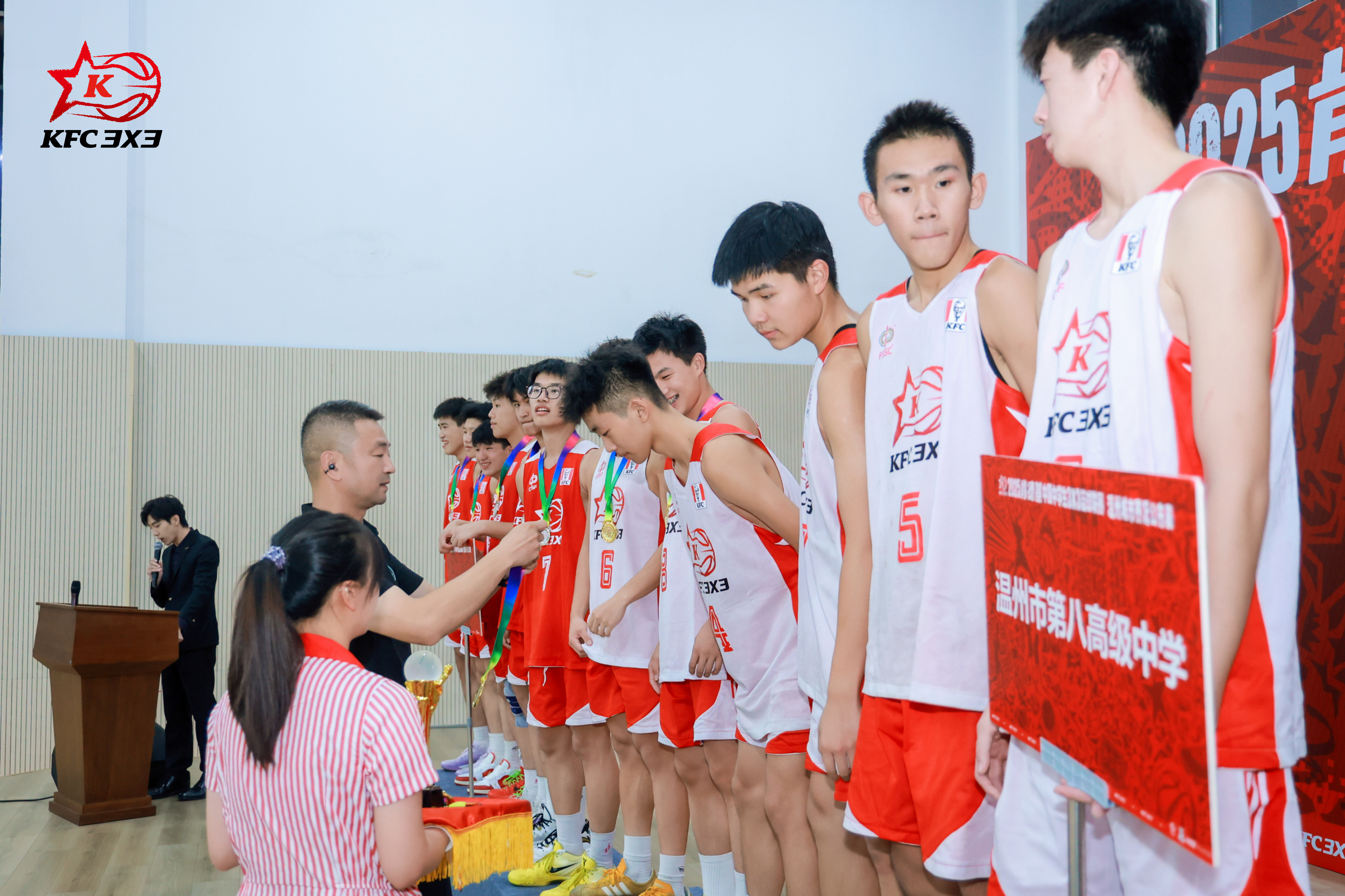 肯德基中国中学生“3×3”篮球联赛由中国学生体育联合会、中国篮球协会共同主办,它是水平最高的“三人制”校园篮球联赛。本届比赛,来自温州各县市区的16支顶级球队参与角逐,八高男篮一路过关斩将,最终夺得冠军,刘镇楠同学荣获赛事MVP。