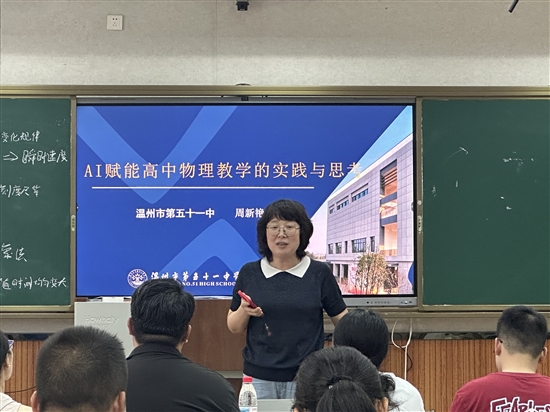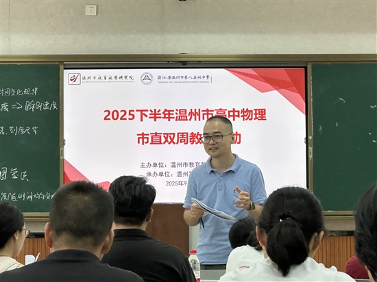 2025年9月11日下午在我校温州八高微格教室,举行温州市直物理教研组长暨市直双周教学活动会议,我校吴鹏老师和程浩迪老师进行公开课展示,结合AI数智化提高课堂交互性。