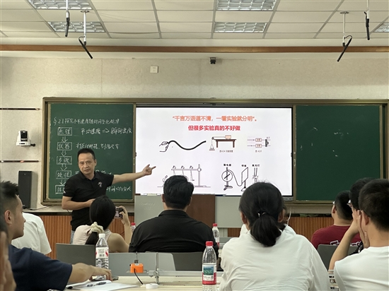 永强中学王浙伟老师以《高中物理实验改进和创新途径及策略》为题,系统介绍了他多年来在实验装置改进、教学流程优化等方面的探索,强调物理实验应贴近生活、激发兴趣。