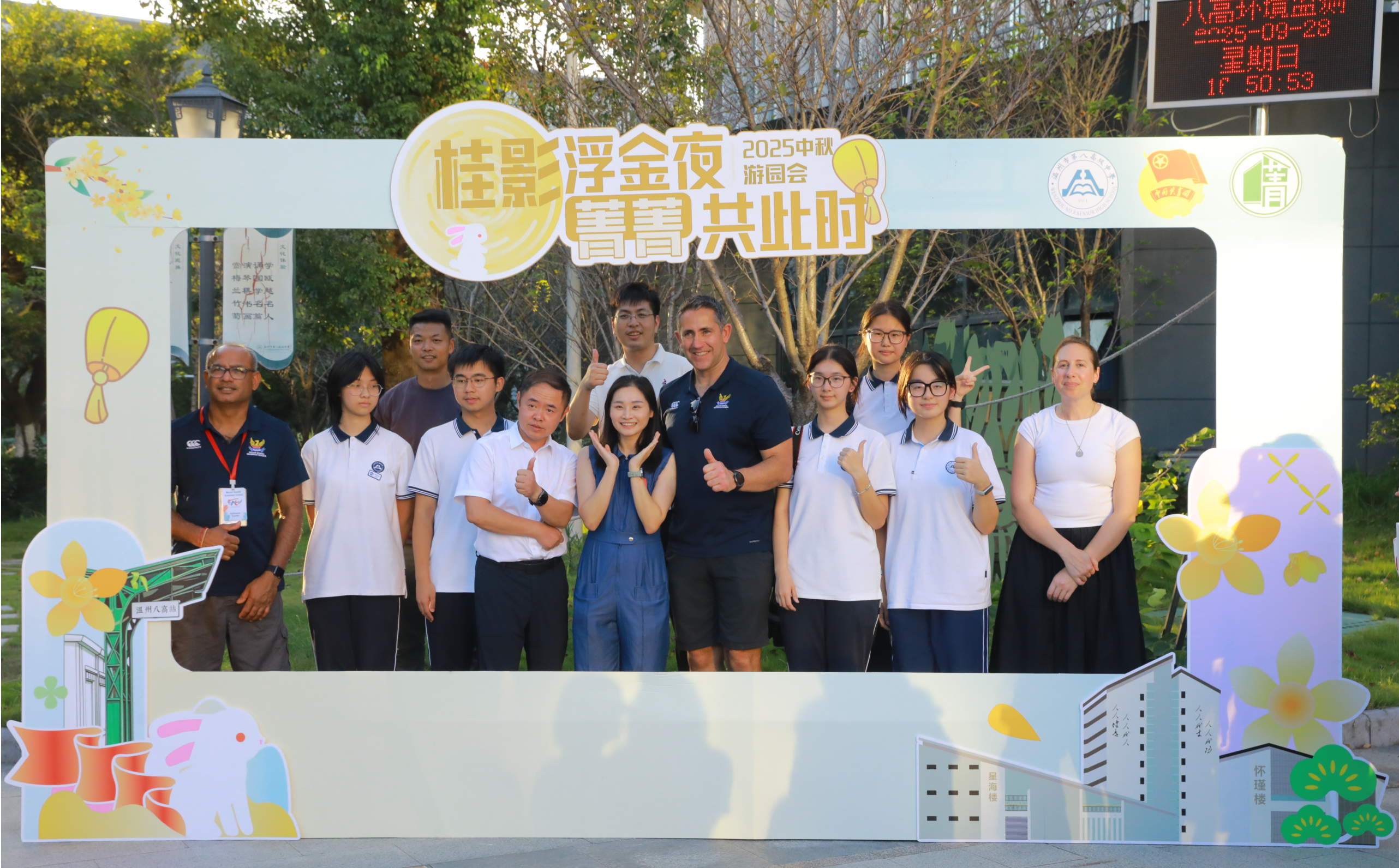 9月28日,温州八高团委学生会举行中秋游园会,与来访的新西兰蒙洛斯基文法中学师生共庆中秋佳节。今日中秋,月满人间,想念那个充满欢歌笑语的团圆时刻,祝福所有人中秋节快乐!