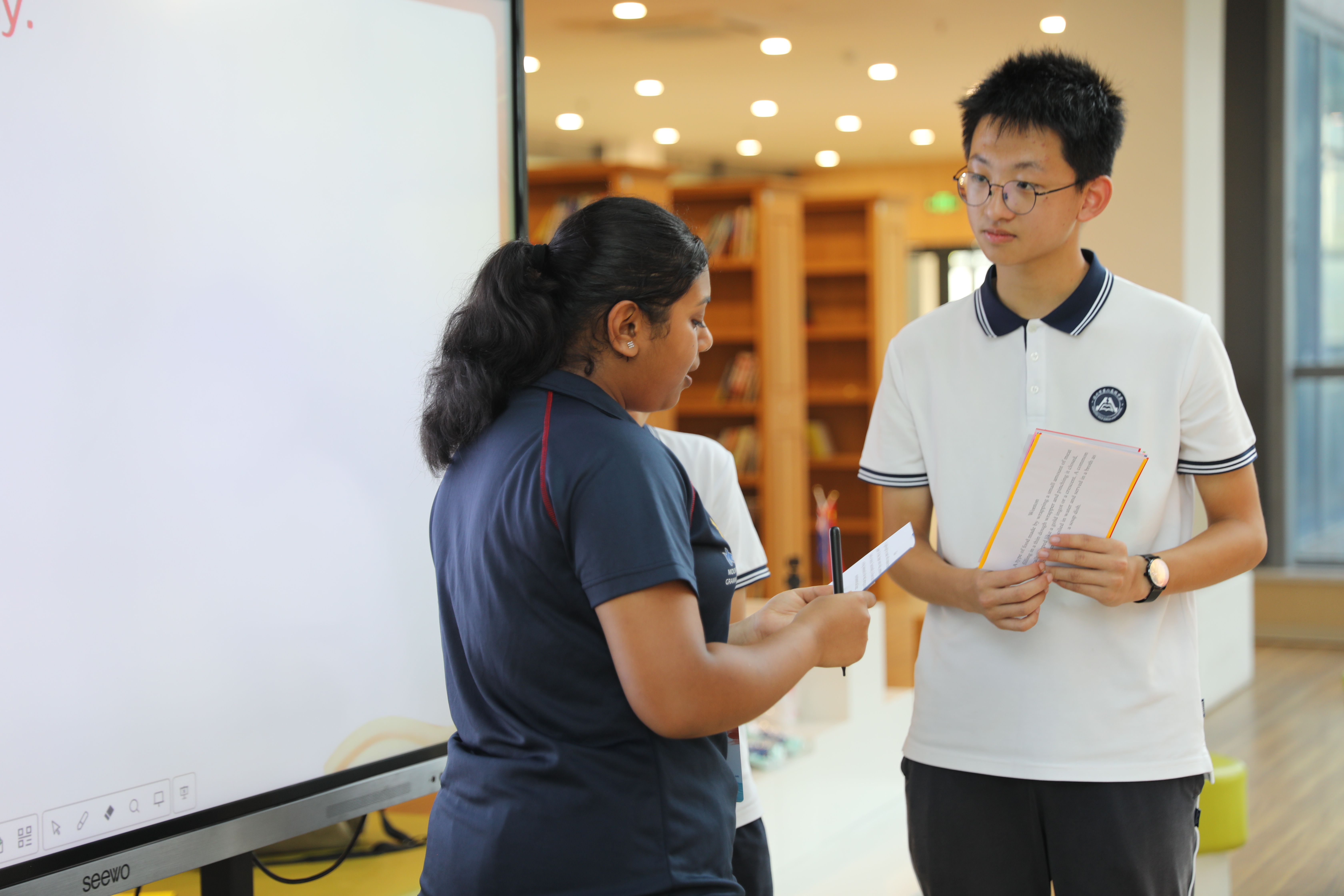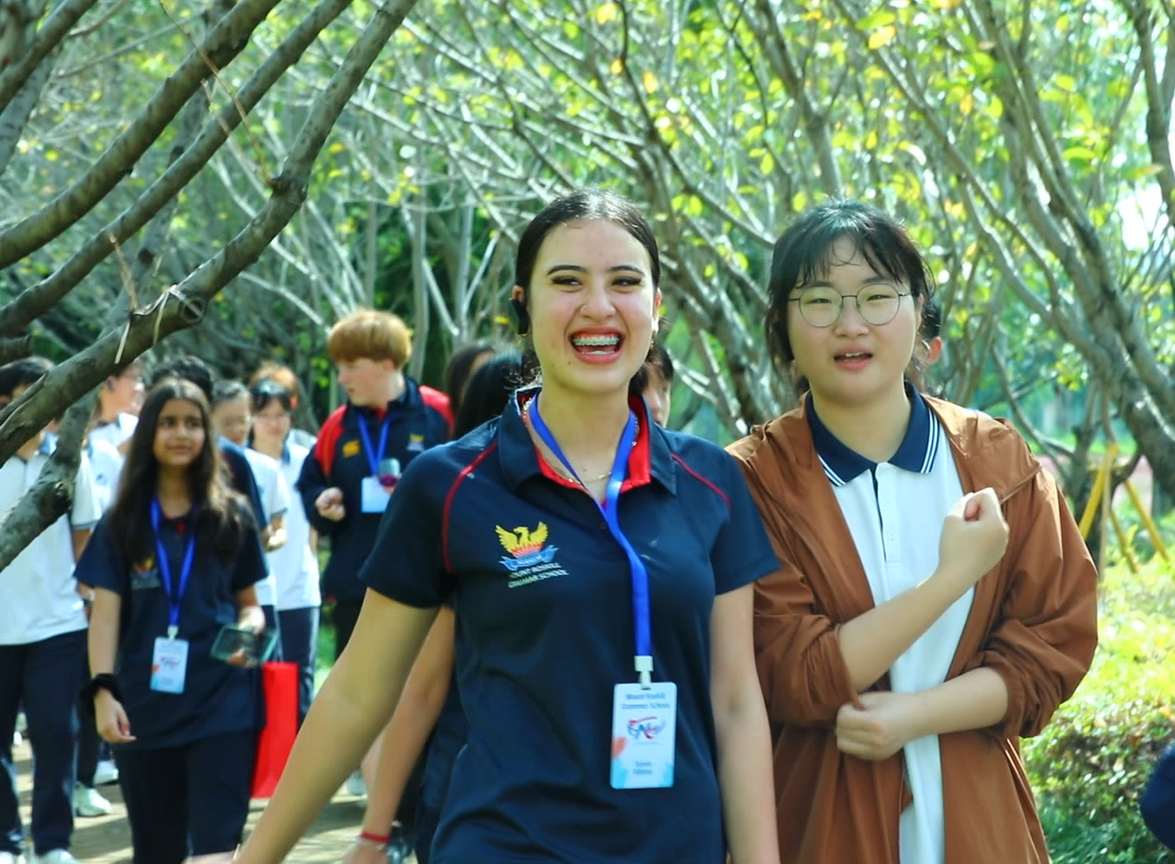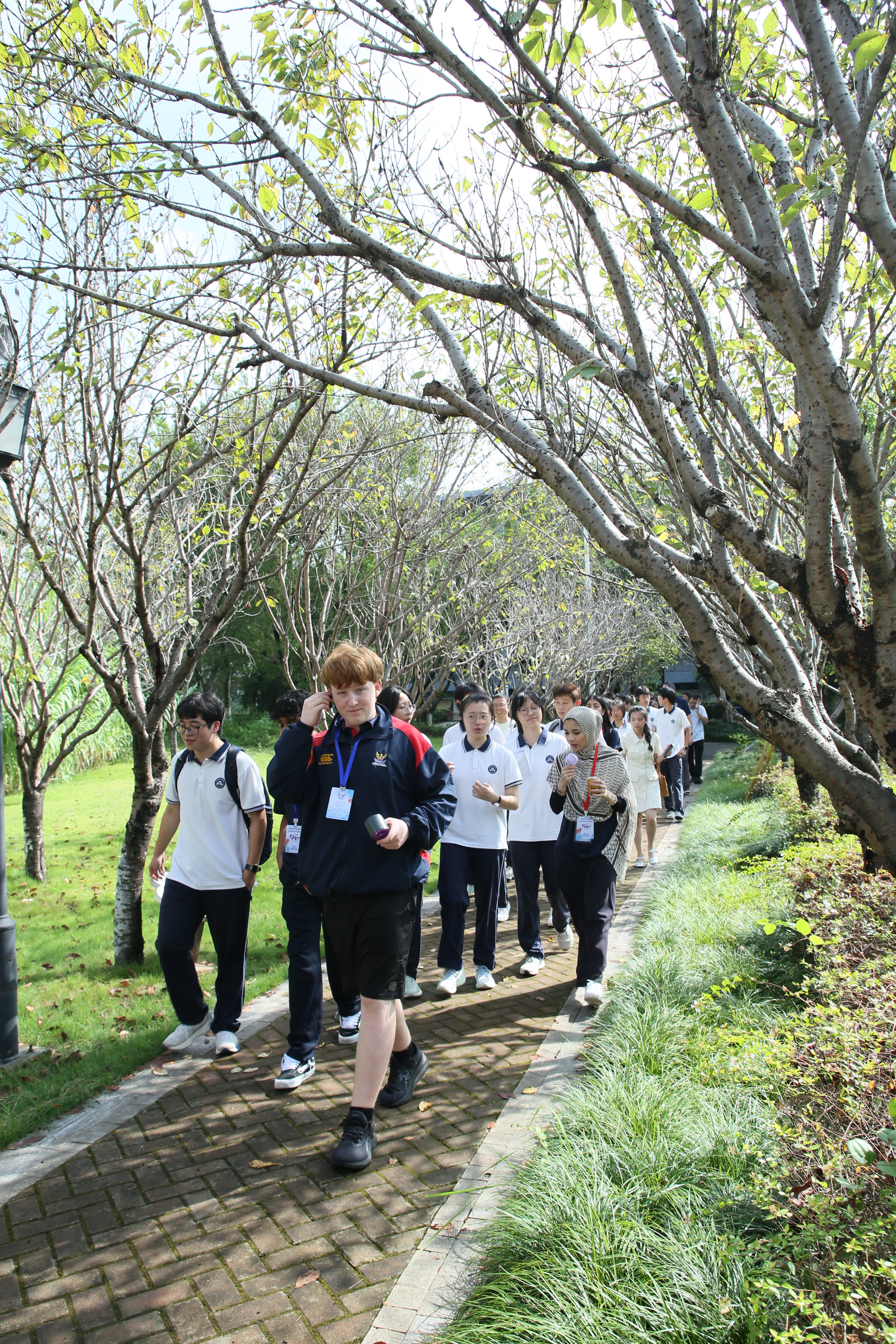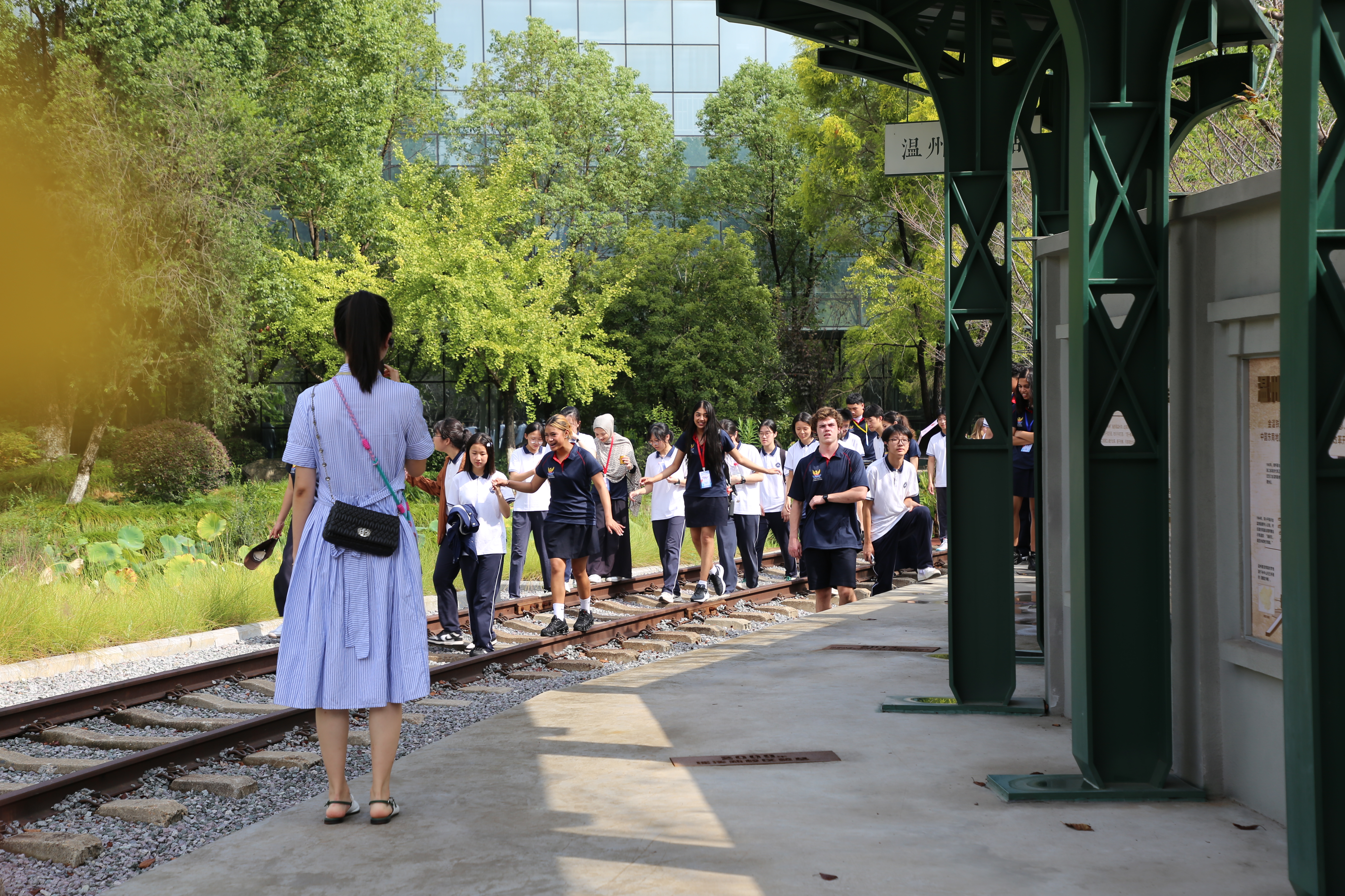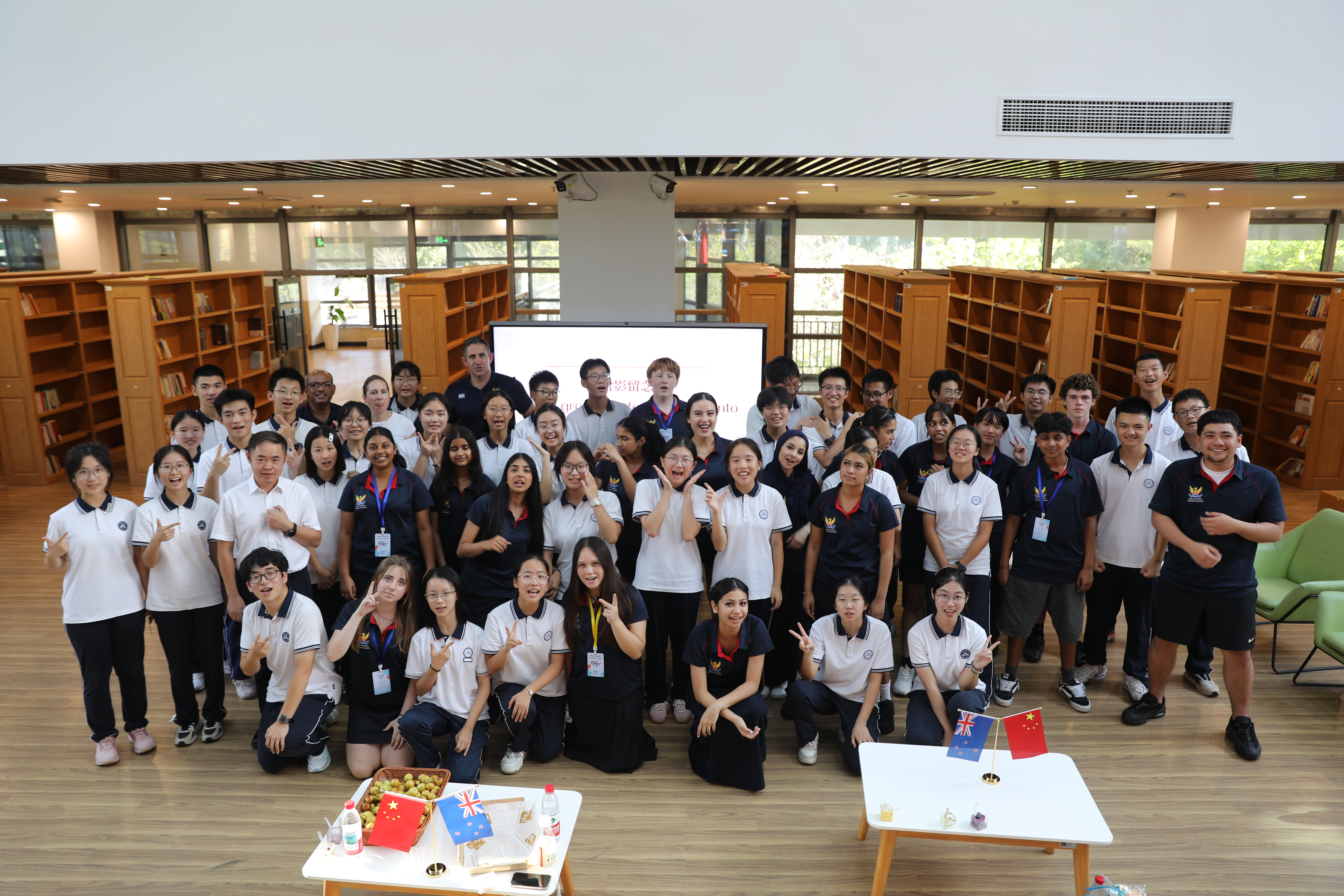 9月18日,暑假期间曾赴新西兰游学的高二同学,一早就在校门口迎候远道而来的“老朋友”,迎面的晨光是同学们似火的热情。在引导参观校园的过程中,两校学子并肩同行,游览了樱花林、玉溪畔、民国风铁轨等学校景观。此情此景,恰似彼时彼景。