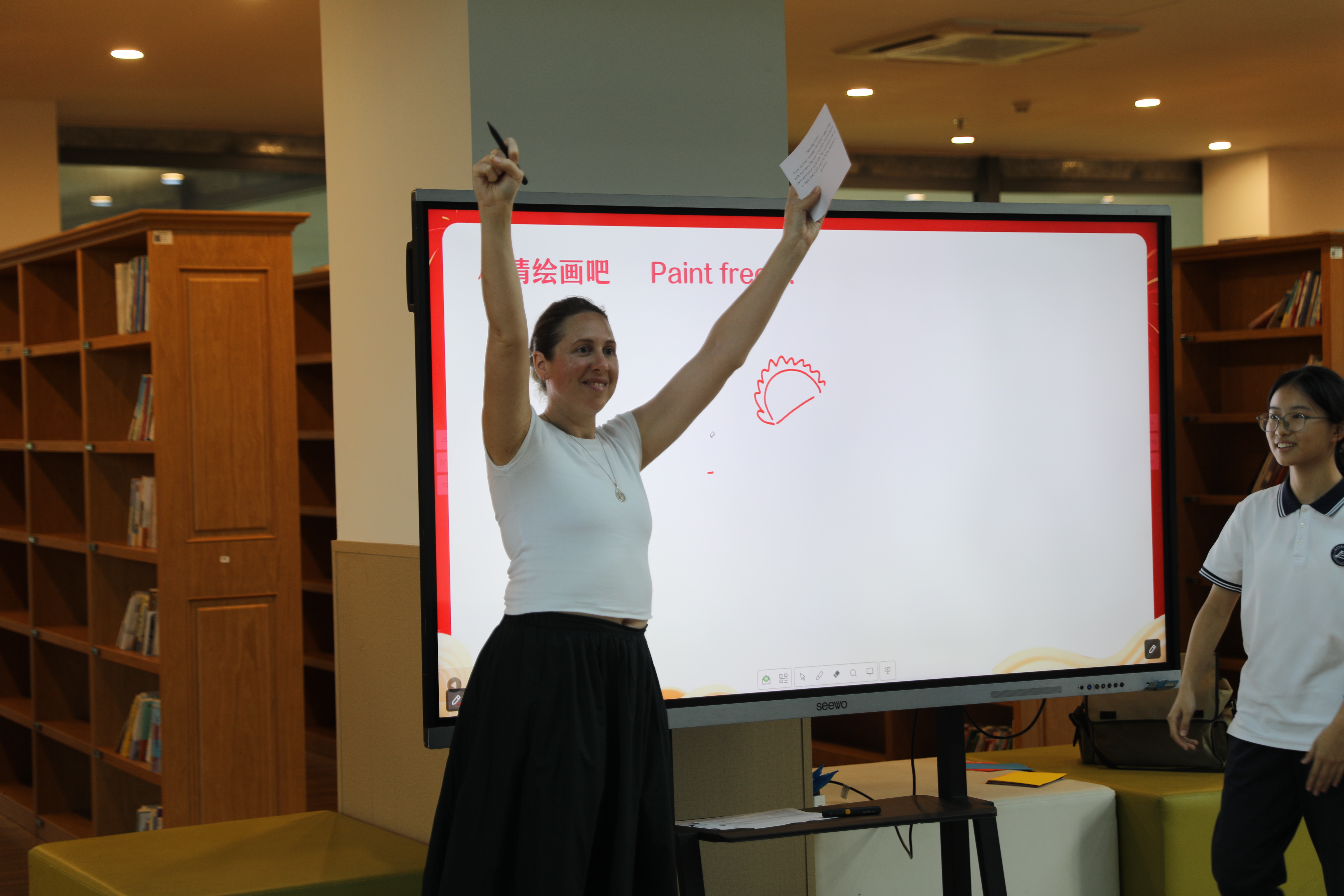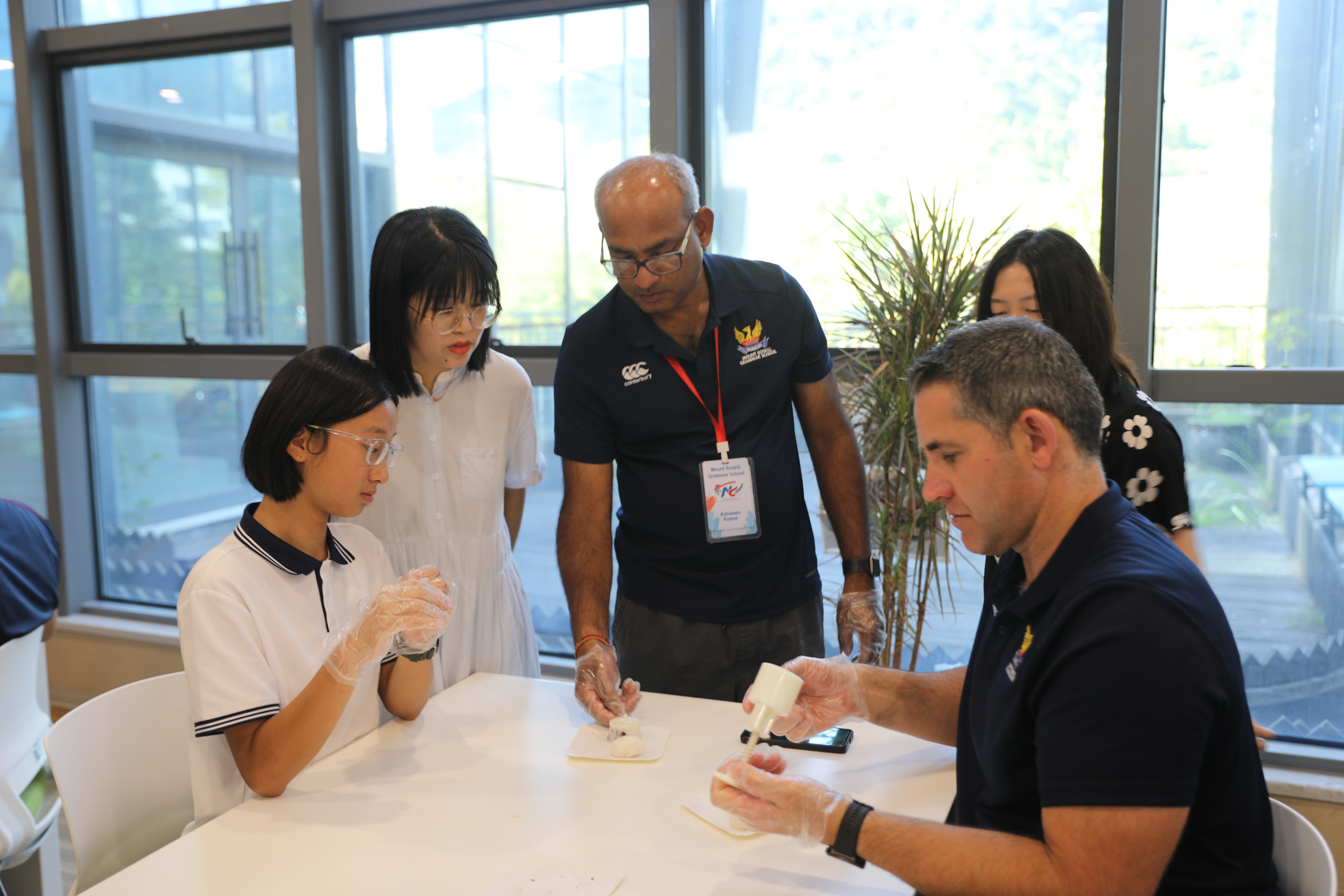 9月28日,友人们再次来到八高,以“第一视角”沉浸式体验“八高每日生活”:体验文化跑操、京剧课和书法课,参观芯片实验室、郑屹朗同学摄影个展,进行乒乓球友谊赛……当天,校团委学生会还举行了中秋游园会,新西兰同学和我校同学一起深度体验做月饼、打陀螺、飞花令、扎染等,一同感受中华传统文化的独特魅力。