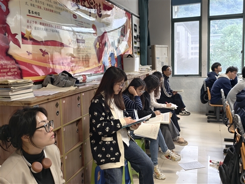 下午课程建设处主任吴昊老师带领老师们与各学科备课组老师们行政楼 4 楼会客室开展学科交流,3位老师继续深入各上课场地听课。交流中,各学科备课组结合自身特点分享了特色做法与校本作业开发经验。