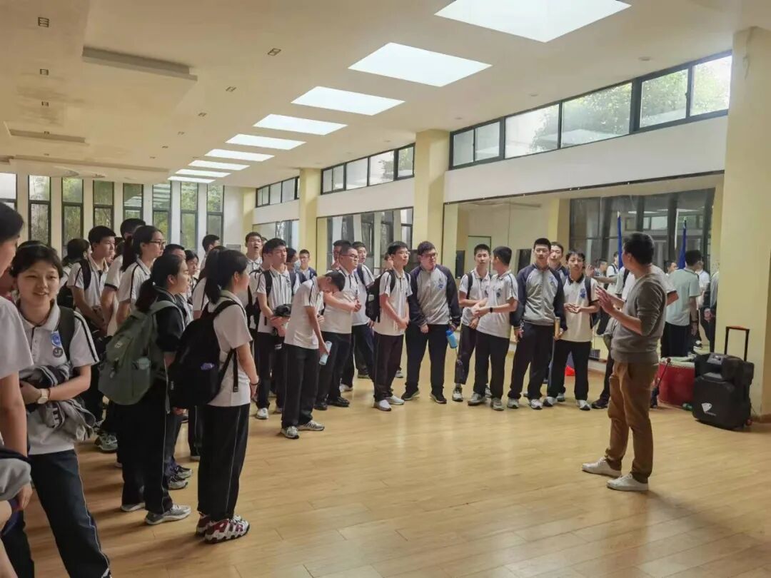 走进高中,约定梦想。在高二学部主任林能琳老师、教学中心滕诗媛老师、德育中心徐敏老师等人的带领下,三中的同学们参观了我校的艺术展、图书馆、体育馆、宿舍楼、食堂等,沉浸式体验高中校园。参观过后,高三学部副主任陈志钊老师向同学们详细介绍了我校的智慧校园、实践课程、课外活动等,同学们纷纷感叹这就是向往的高中生活。