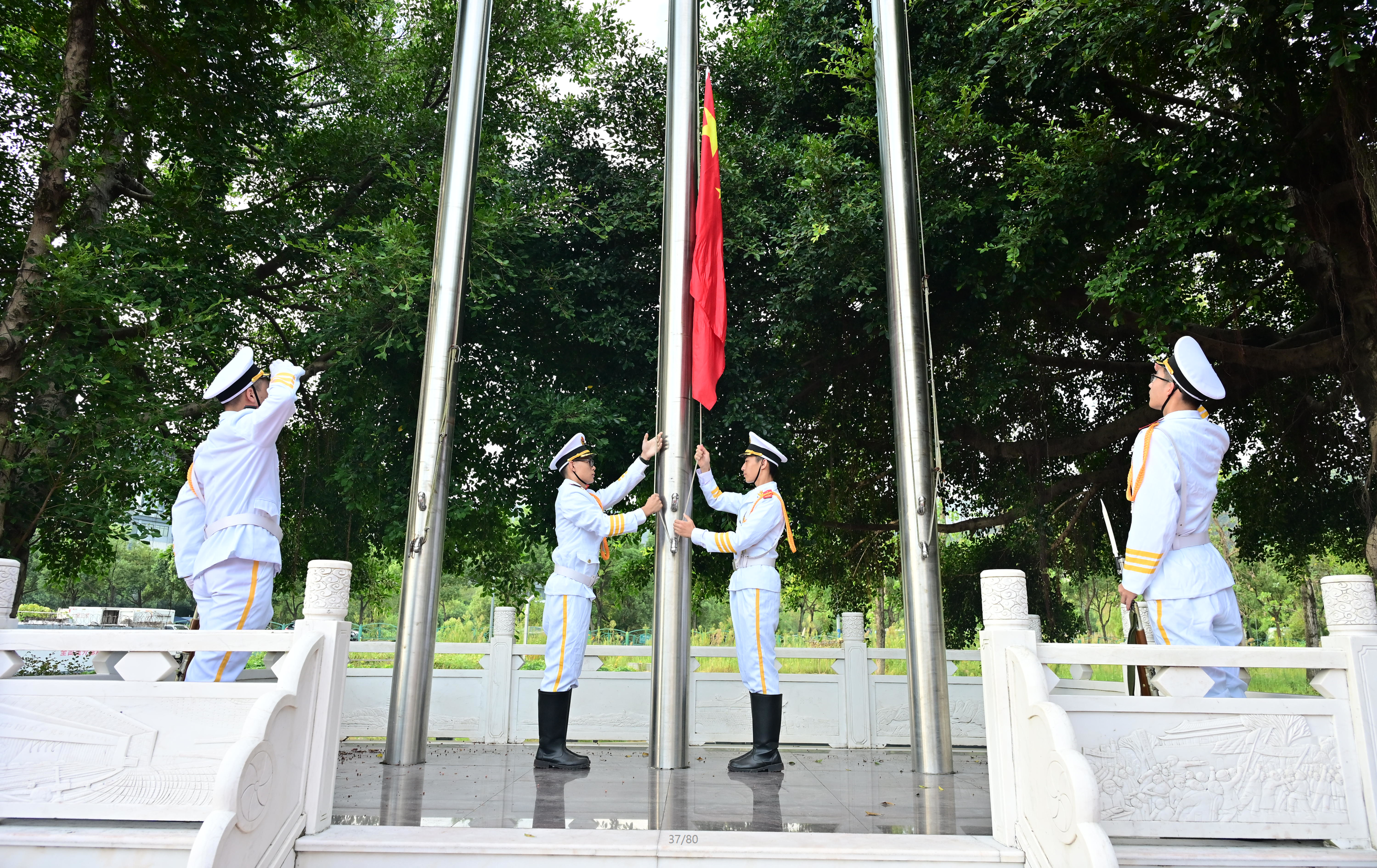 杨文龙带领全体同学面向国旗庄严宣誓:“铭记历史,珍爱和平,努力学习,振兴中华!” 学子们的誓言整齐坚定、响彻校园、震撼人心,尽显新时代少年的责任担当。