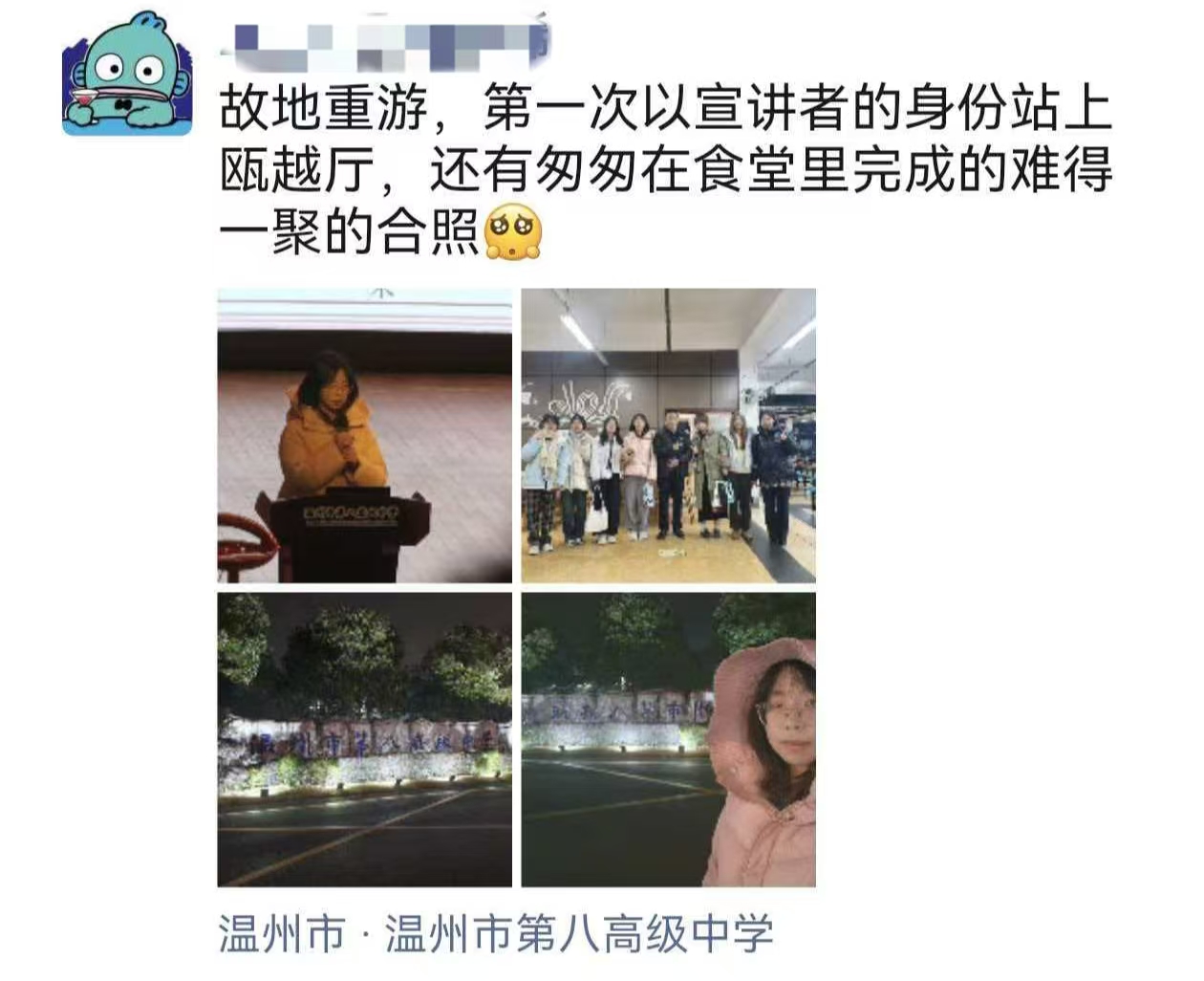 2026年1月25日,温州八高举行“校友回家日”活动,五湖四海的八高学子重返校园,熟悉的景致依旧,温暖的人事如故,字字真挚的心声,漾满八高人的朋友圈,打开了八高人的“十八岁记忆”。