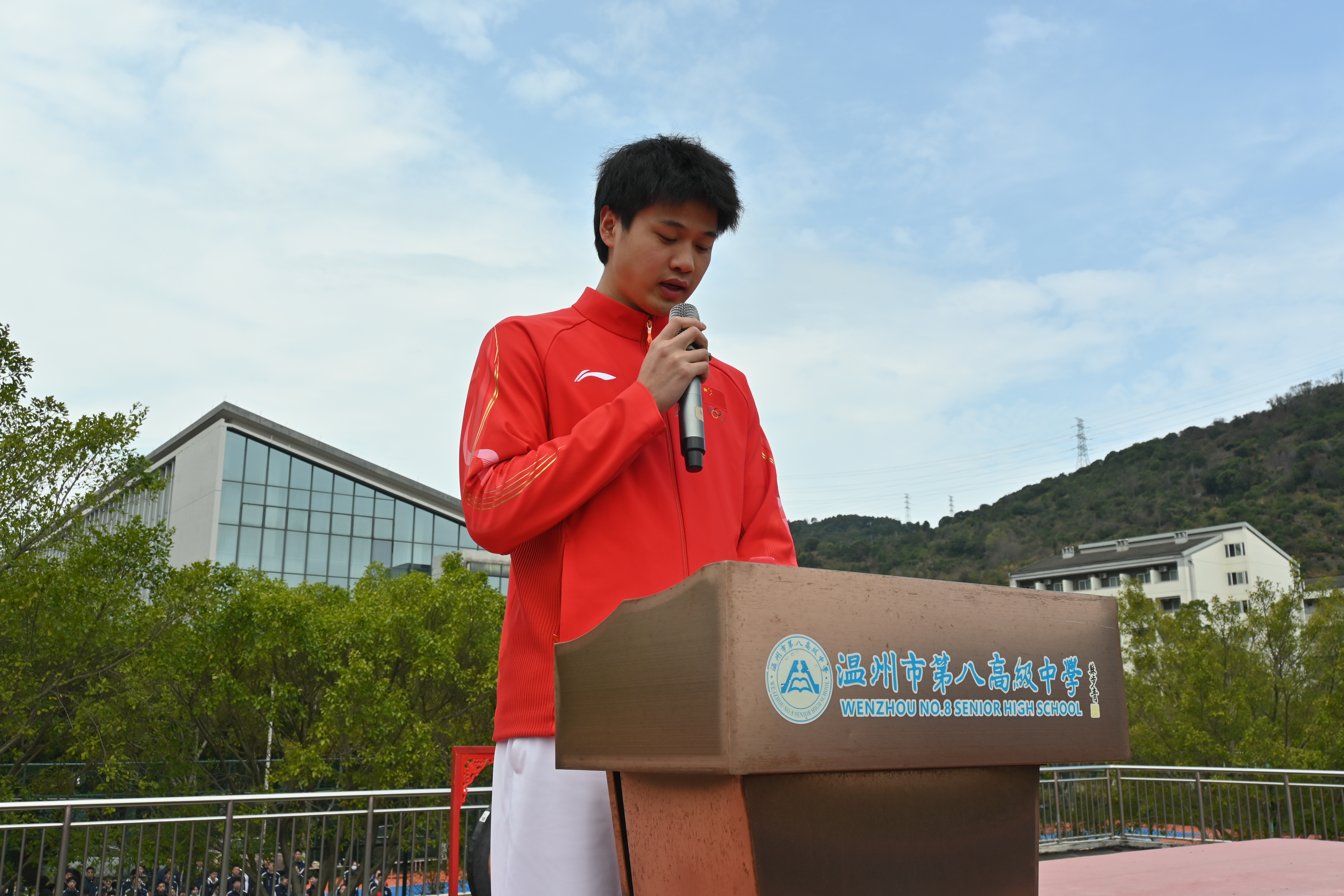2026年3月2日,雨后的阳光似碎金般倾洒在校园,温州八高2025学年第二学期“行动,让未来发生”开学典礼如期举行。优秀校友陈跃川、全体同学、班主任、行政团队齐聚操场,共同见证新学期的启航。本次典礼,我们还邀请到一位特殊嘉宾——温州籍钢架雪车运动员林勤炜——他刚刚在米兰冬奥会上创造了浙江冰雪运动员的历史最佳战绩,应邀给同学们上开学第一课。