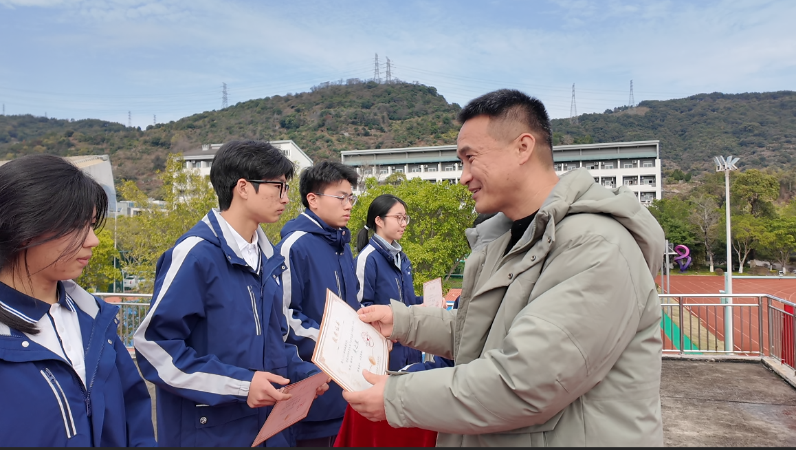 回望2025,学校连续第四年荣获温州市教育质量奖,桥牌队首夺全国季军,田径队历史性挺进全国赛,合唱团首得全省一等奖。“所有这些‘突然’的绽放,无不是‘必然’在时光深处默默扎根后的迸发。”他提出三点希望:以清醒的行动回应时代课题,在变局中修炼定力;以开心的行动破解成长焦虑,用好奇心驱动学习,用“微行动”安顿身心;以踏实的行动书写自身史诗,既要胸中有“奔驰”的远方,也要脚下有“五菱”的坚韧。